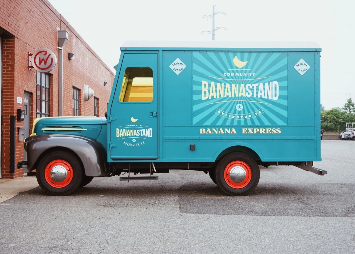 Custom mobile pop-up fabrication, Mobile store, Vintage fabrication, Custom Signage & DisplaysThe original Banana stand was an Airstream we made for their Seattle HQ, but fast forward to their new VA office they needed a new stand, so stationed proudly in front of Amazon's headquarters, the Banana Truck became a vibrant hub, delighting passersby with free bananas. Made from a vintage 1947 ford box car, its nostalgic charm combined with modern aesthetics provided a refreshing experience. If you want to learn more about how the banana truck came to be check out this article featured in Business Insider.